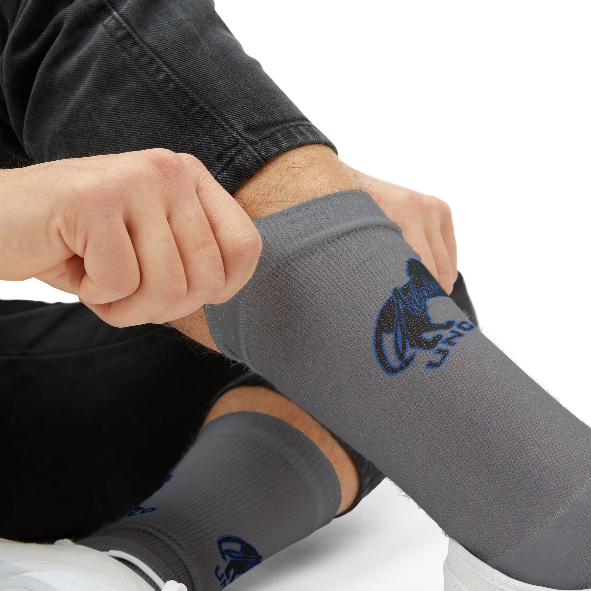 Slide into socks that feel like a quiet, warm pause in a busy day. These crew-length sublimation socks wrap your calves in a soft ribbed weave and a plush fleece lining underfoot. The all-over print gives a subtle graphic presence — tucked into boots or peeking out beneath jeans, they lend a low-key, personal touch to everyday wear. Cushioned bottoms soften each step and the ribbed tube keeps the fit steady without pinching. Lightweight stretch in the polyester-spandex blend moves with you, while the crew height and extra padding make them especially good for long walks, chilly commutes, or evenings by the fire.